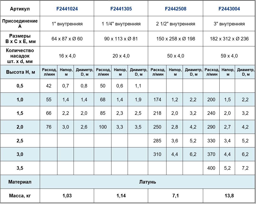 Высота струи max, м