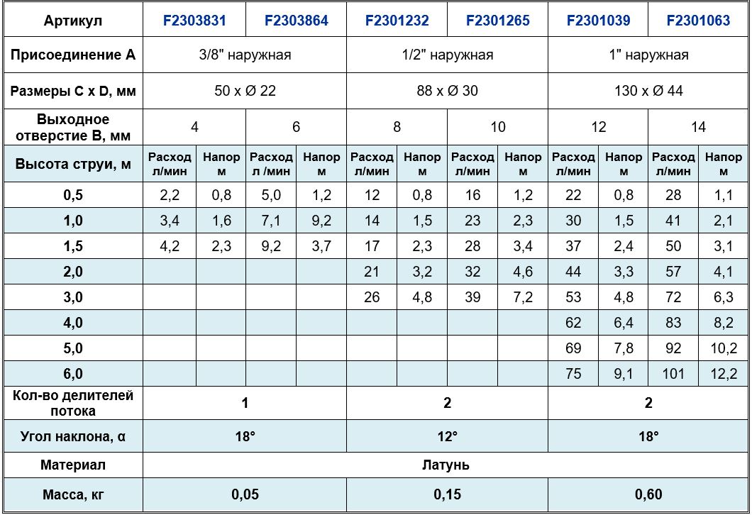 Фонтанная насадка Lance jet flow adjustable 1/2", 10 мм